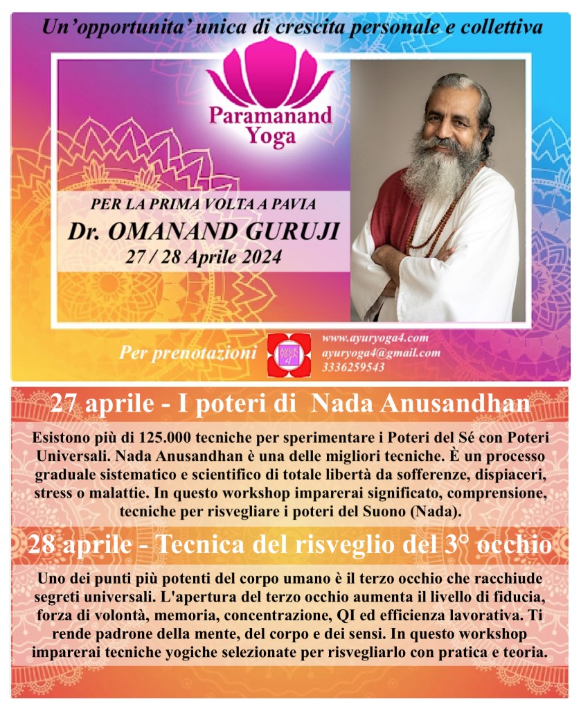 Un fine settimana di riscoperta e crescita personale. Il meglio della tradizione Yogica Indiana direttamente a vostra disposizione. Seminari in Inglese con traduzione in Italiano.