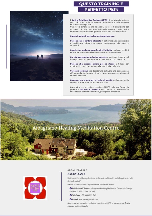 Questa è la tua occasione per vivere l’LRT® nella sua forma più potente — dal vivo, in presenza, e circondato da persone affini sullo stesso cammino di amore, guarigione e crescita.