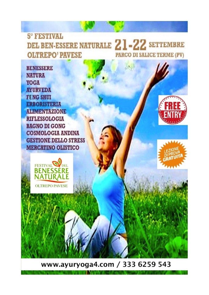 Il FESTIVAL DEL BEN-ESSERE NATURALE ” OLTREPO’ PAVESE “, in collaborazione con AYURYOGA 4, terapisti, produttori ed istituzioni locali; ha l’obbiettivo di promuovere e divulgare metodologie di prevenzione e salvaguardia della salute in ambito olistico, tradizionale e naturale nel suo contesto prediletto, la natura delle verdi colline dell’Oltrepò Pavese.